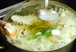 新鮮な白身魚(真鯛・カレイ・ヒラメ・金目鯛等)のアラと新鮮な野菜とハーブ類を使い毎日じっくりと8時間旨味成分を抽出したスープを使用。